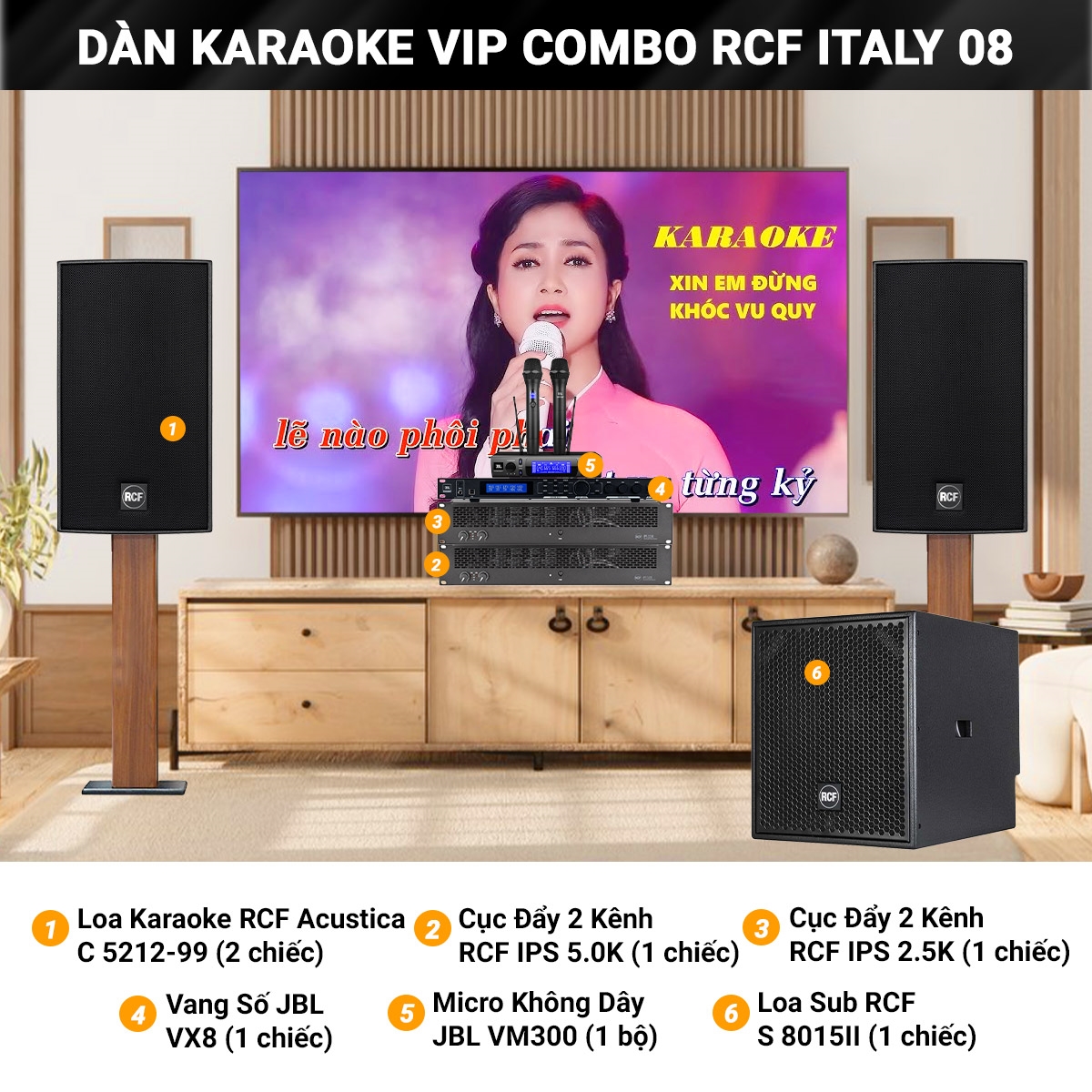 Bộ Dàn Karaoke Cao Cấp Combo RCF Italy 08 gồm các thiết bị sau: