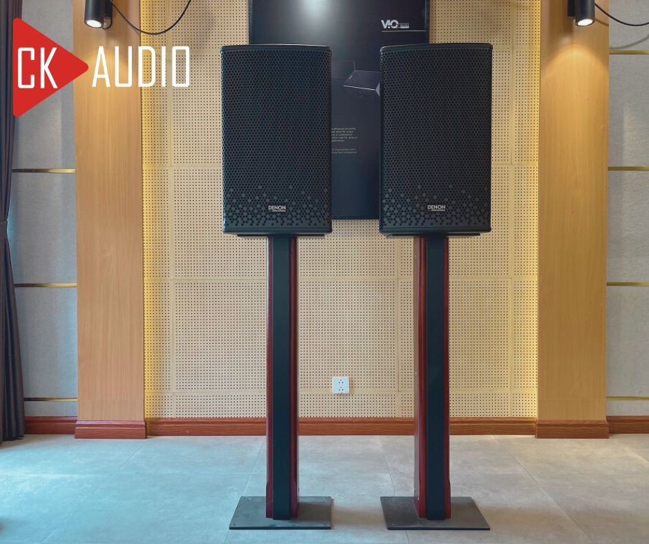 Mặt trước là lớp ê căng cao cấp, bên góc dưới được chế tác logo Denon Professional tăng độ nhận diện thương hiệu. Hai bên là hai tay cầm dễ dàng di chuyển và setup nhiều vị trí khác nhau một cách tiện lợi.